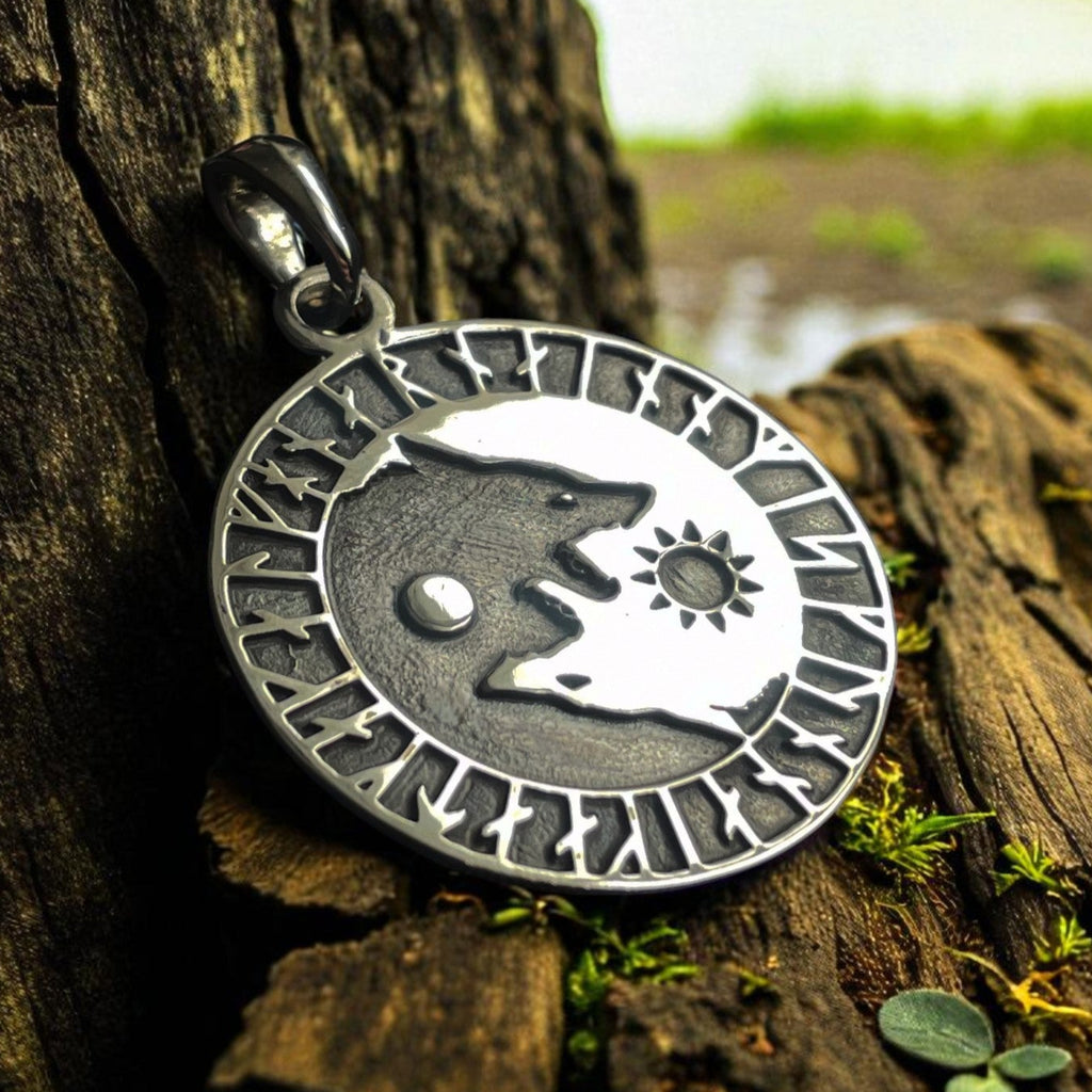 Sterling Silver Skoll and Hati Wolves Pendant