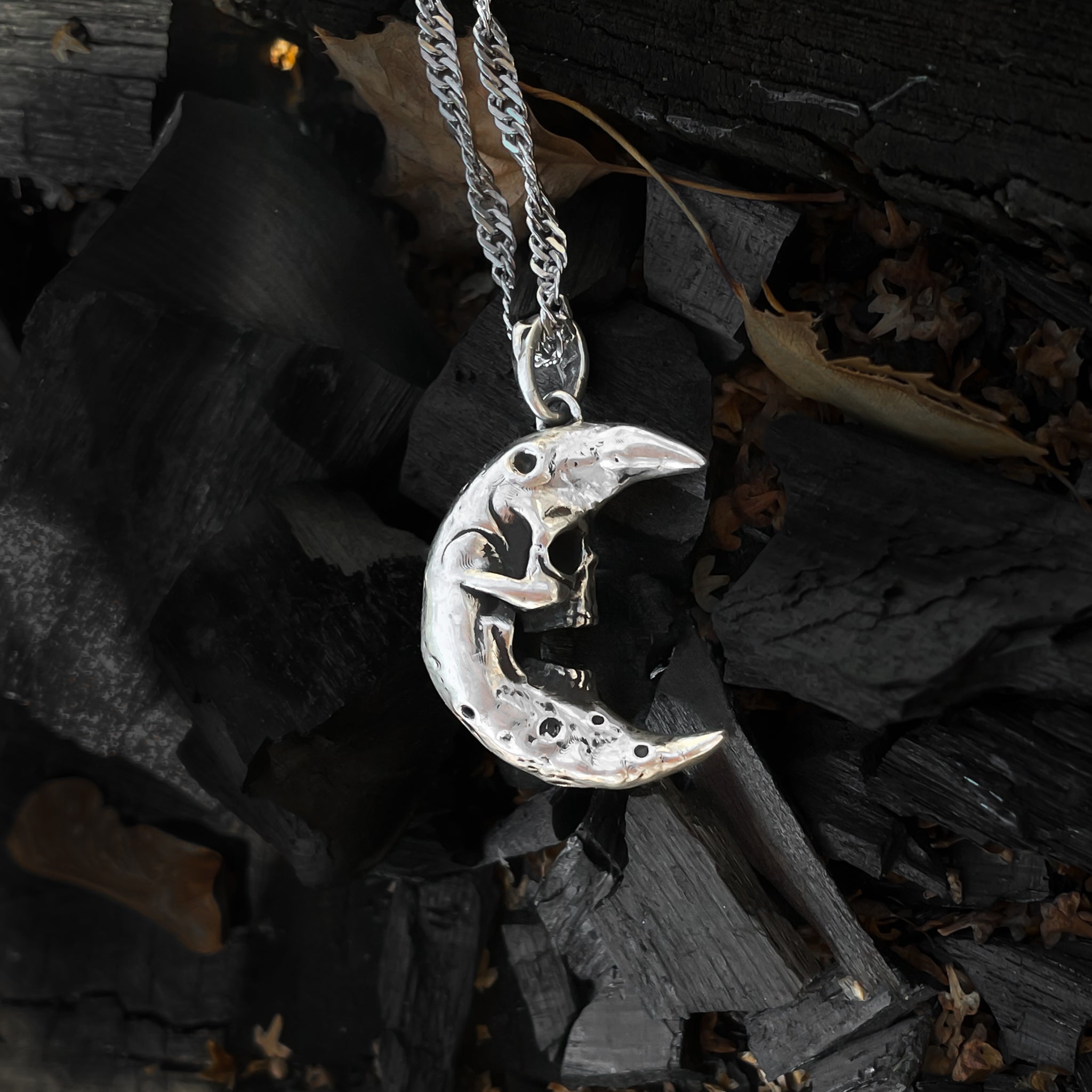 This pendant blends mystery, death, and celestial symbolism. A perfect piece for those drawn to night magic, dark beauty, and cosmic duality. Whether you're dressing for a spooky season or living the gothic life year-round, this necklace tells your story without saying a word.